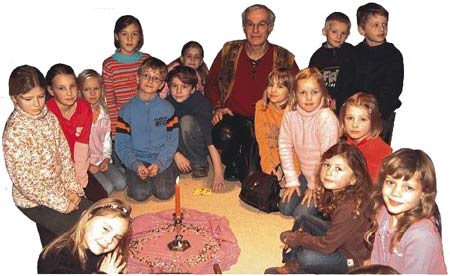 für seine kleinen Zuhörer ein